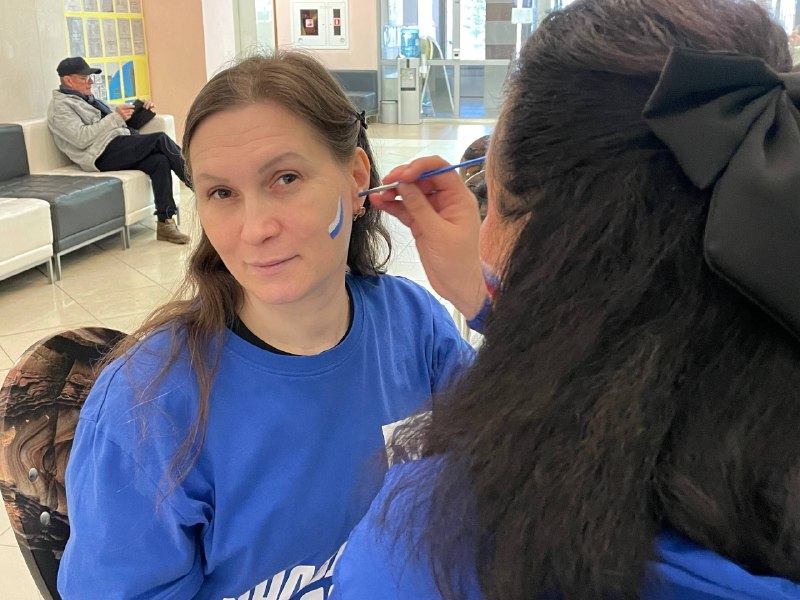 Самым юным патриотам и всем желающим активисты МГЕР рисовали на лицах российский флаг. Яркие и живые символы единения с Родиной создавали по-настоящему праздничную атмосферу.