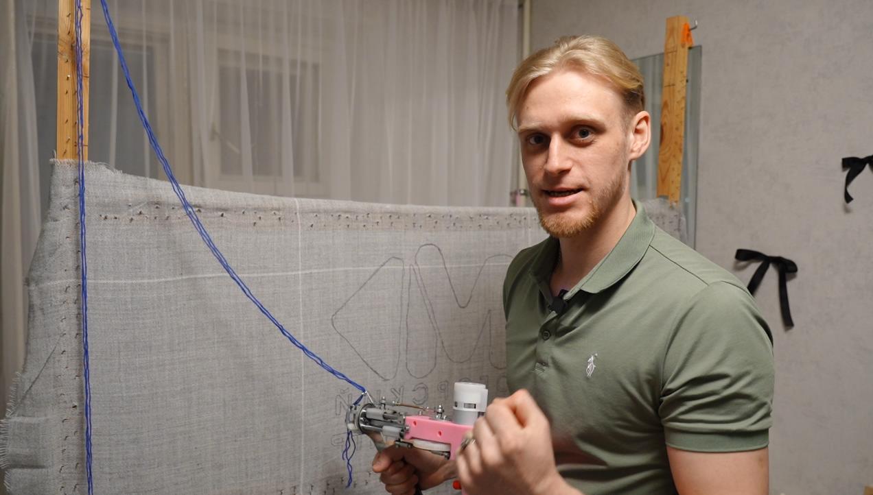 Константин начал с покупки оборудования, ткани, ниток и других необходимых вещей. Как пояснил мастер, техника изготовления такова: натягивается основа и в нее с помощью специального пистолета с пряжей набивают ворс. Процесс создания изделий с объемным рисунком достаточно кропотливый, требует внимания и времени.